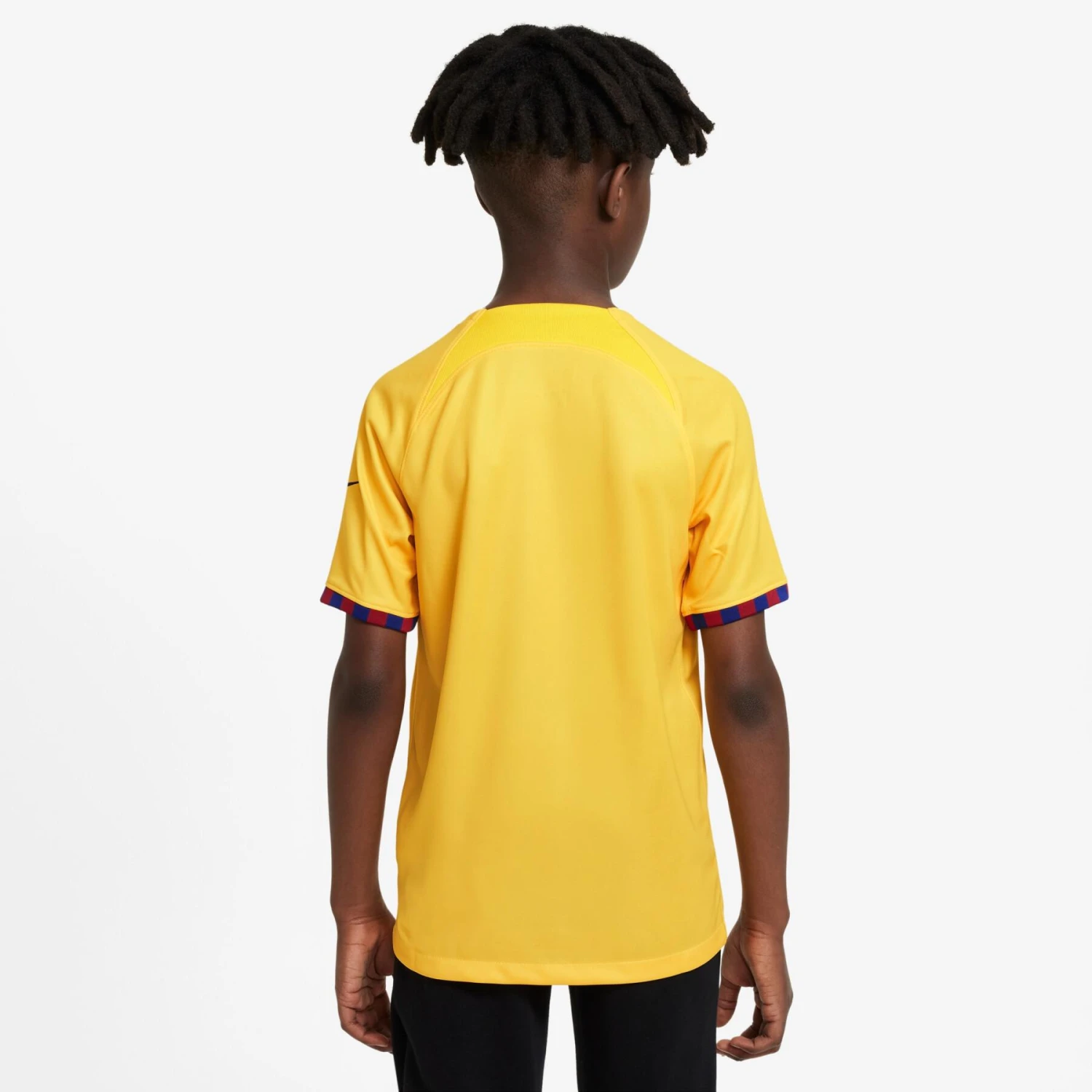 Le maillot de football FC Barcelona 4th est inspiré du drapeau catalan (La Senyera). Le maillot de football est entièrement jaune et se caractérise par les quatre bandes rouges horizontales sur la poitrine. La bande en bas des manches présente un dessin de blocs rouges et bleus, inspiré des couleurs du club du FC Barcelone. Le maillot de football a un col rond avec une courbe en dessous. Le logo du FC Barcelone est au centre de la poitrine et le logo Spotify est au centre du maillot. Le swoosh Nike est bleu sur les deux manches. Le sponsor UNHR ACNUR décore le dos du maillot de football. Les uniformes du FC Barcelone sont équipés de la technologie Nike Dri Fit, qui assure le refroidissement, la ventilation et le transport de l’humidité, afin que les joueurs puissent jouer de manière optimale.