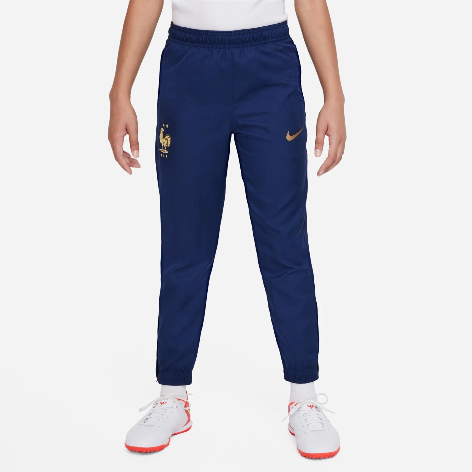 Le survêtement France Strike présente des détails spécialement adaptés aux étoiles montantes du football. La coupe décontractée et le tissu anti-transpiration vous offrent une fraîcheur et une concentration optimales pour laisser parler votre talent.Technologie Nike Dri-FIT évacuant la transpiration pour une évaporation plus rapide, vous permettant ainsi de rester au sec et de bénéficier d’un maximum de confort.Poches à zip pour un rangement sécurisé de vos objets essentiels.Zips au bas des jambes pour vous changer facilement, sans avoir à enlever vos crampons ou vos chaussures.